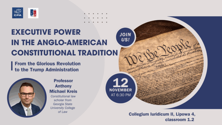 Centrum Prawa Amerykańskiego i Koło Naukowe Prawa Amerykańskiego zapraszają na wykład otwarty 'Executive Power in the Anglo-American Constitutional Tradition: From the Glorious
